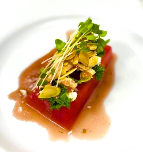 This twist on a watermelon recipe comes courtesy of Rodrick Beazer, the Executive Sous Chef of Curtain Bluff Resort in Antigua and Barbuda, the twin-island nation in the heart of the Caribbean Sea.